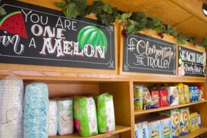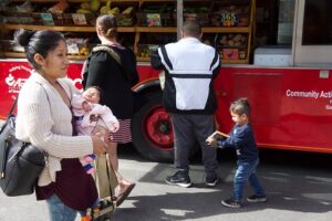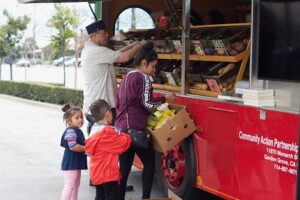 What a success! Wednesday, February 27, 2019 marked the Clementine Trolley’s first visit to WIC. Clementine is a beautiful mobile food pantry that serves Orange County through Community Action Partnership Orange County and The OC Food Bank. The trolley visited Santa Ana East WIC and was a total success! Clementine provides free food to families and served 55 families during their two hours at WIC. Families received fresh produce, diapers, canned food, frozen ground beef and turkey, organic frozen chicken, and frozen meals that were prepared by a gourmet chef using foods from the food bank. They also gave away brand new books. WIC participants received all of this on top of their WIC benefits!