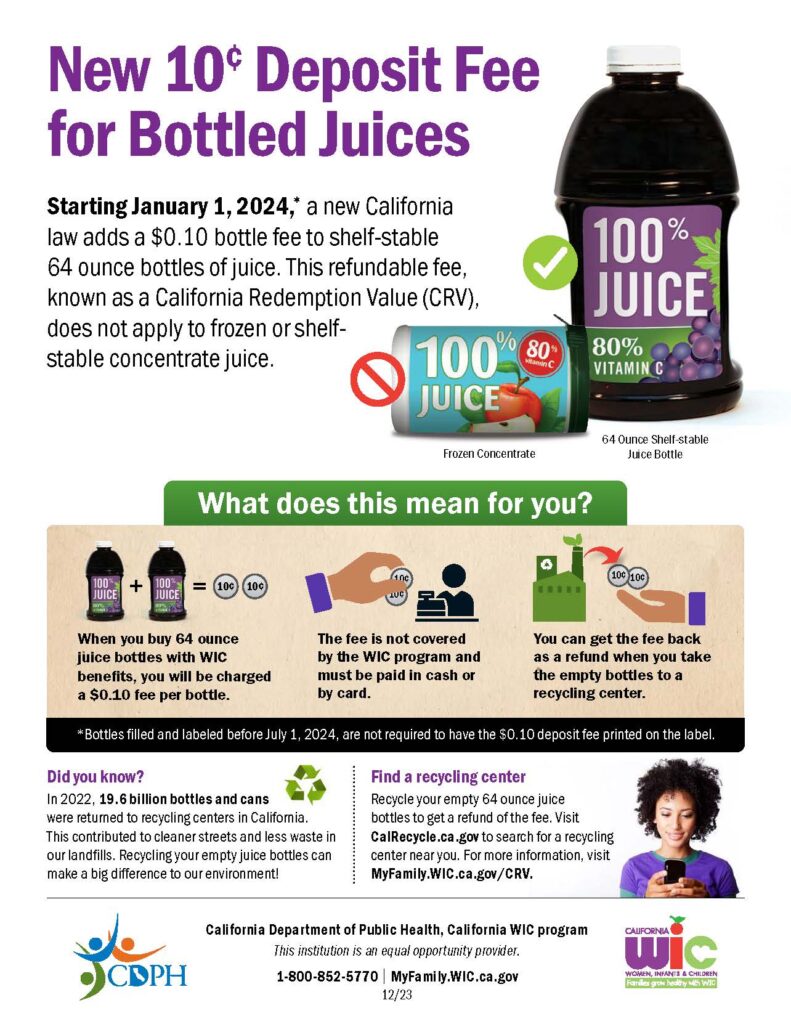 - Starting January 1, 2024, The California Beverage Container Recycling and Litter Reduction Act will require that a ten-cent ($0.10) fee be added to the purchase of bottled drinks.