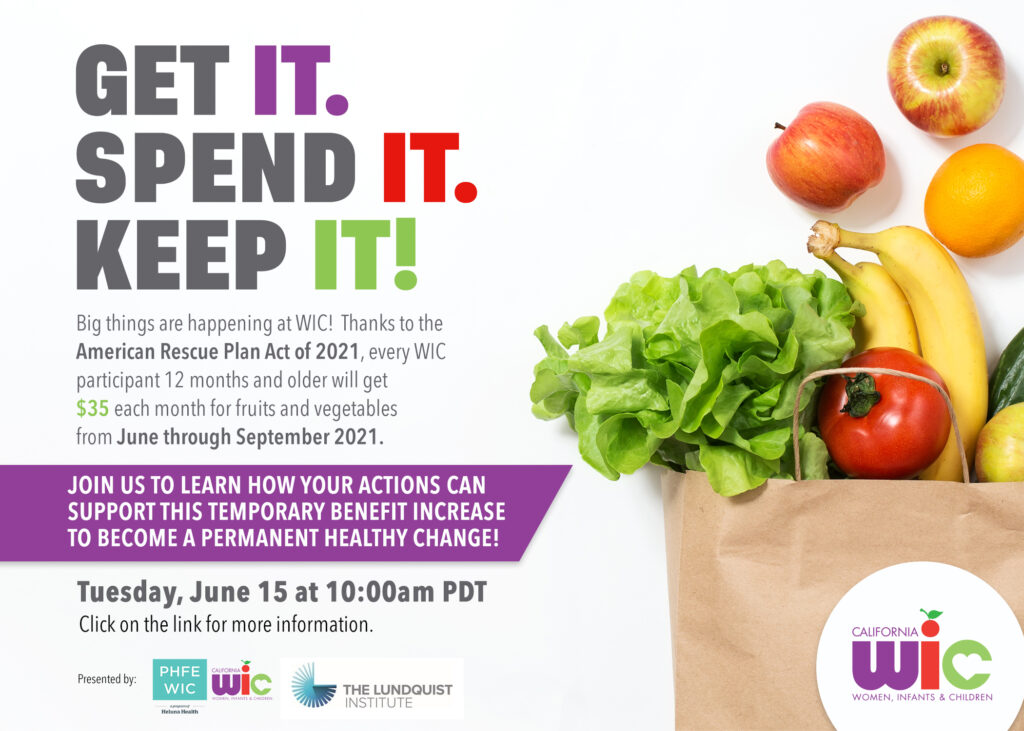 Join us to learn how your actions can support this temporary benefit increase to become a permanent healthy. We look forward to answering all of your question about WIC and the temporary benefit increase.
