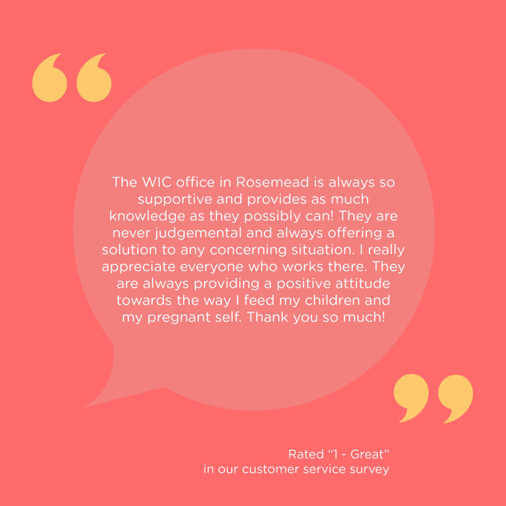 PS: We love to hear from you! If you’d like to share feedback about your WIC experience, leave a Yelp or Google review for your local WIC office, or contact us directly!